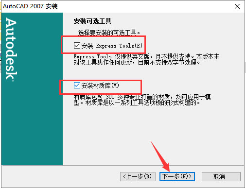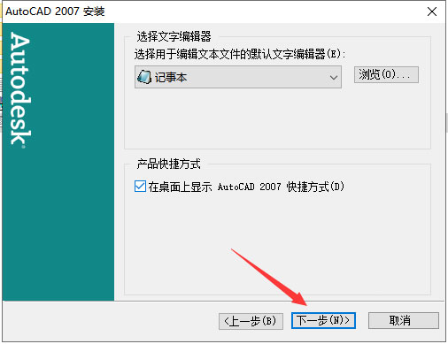 9、勾选在桌面上显示Autocad 2007 快捷方式,点击下一步即可。