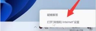 第1步、首先我们点击右下角的网络按钮,然后选择其中的“打开网络和internet设置”。