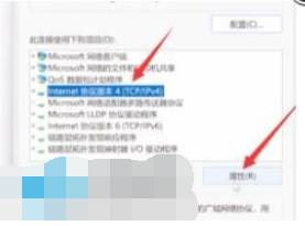 第4步、在其中选择“internet协议版本4”,然后点击右下角“属性”。