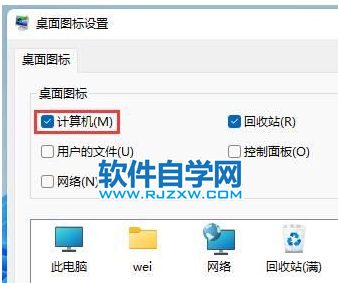 第5步、之中桌面上图标下边启用“计算机”开启。