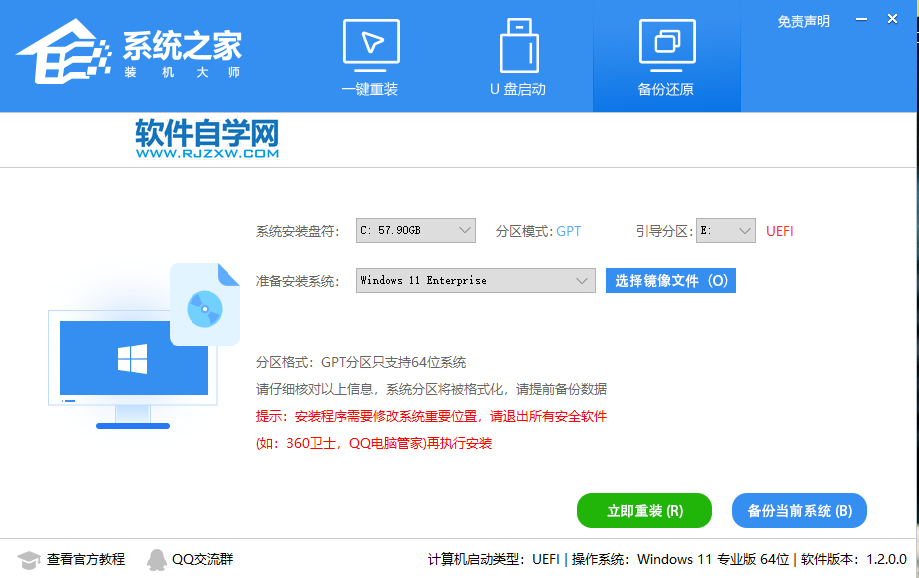 4、接着在电脑上安装系统之家装机大师,选择备份还原。