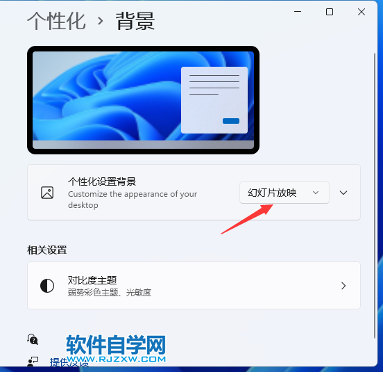 3、将背景的下拉菜单选项设置为幻灯片放映。
