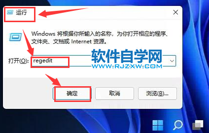 1、按下键盘的win+R键,打开运行窗口,输入regedit字样后,点击确定。