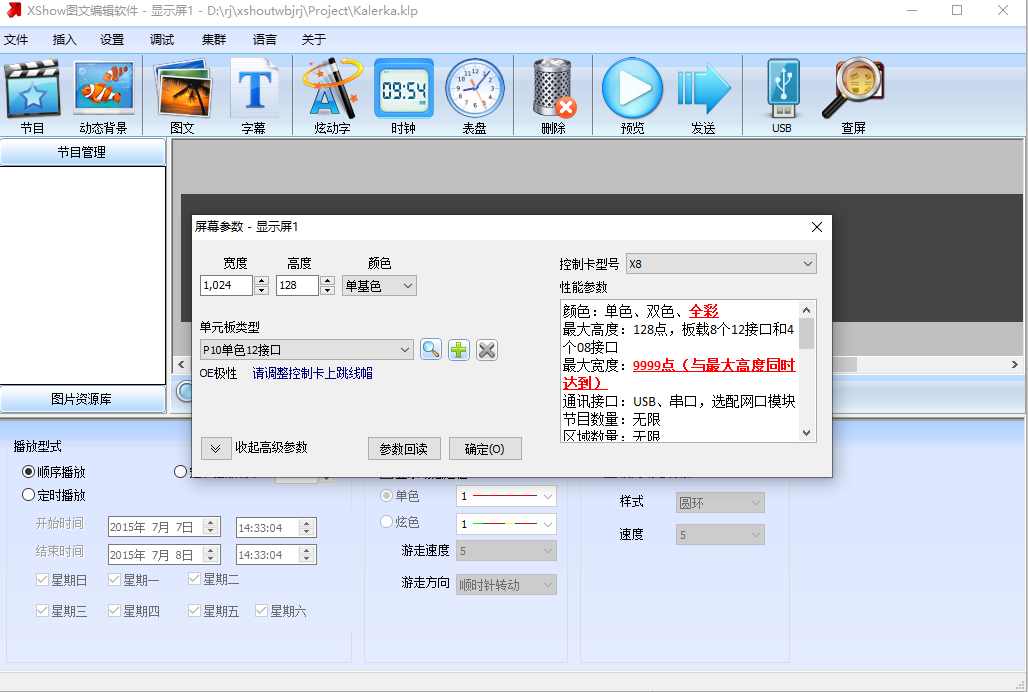 xshow显示屏相关设置教程: 1、首先新建一个工程,创建初始首先是确定led屏幕的大小和控制器的选择。如果是已经组合好的系统,那么可以直接回读参数,等待控制器连接完成后回传屏幕参数即可。