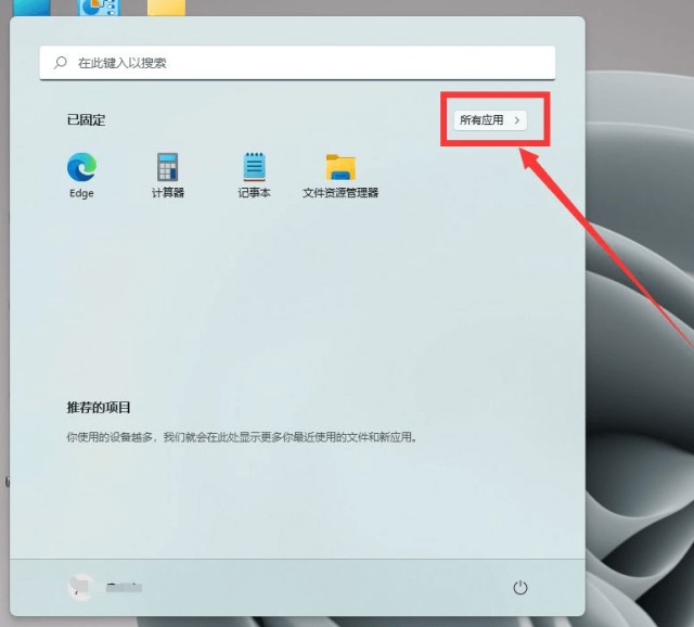 win11摄像头打开黑屏的解决方法: 方法一: 1、按下【win】键,在弹出的界面中选择【所有应用】。