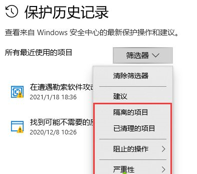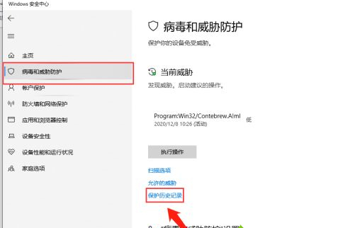 4.选择保护历史记录;