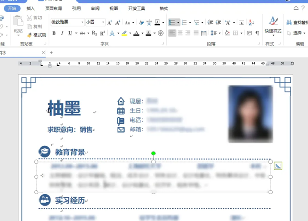 5、根据模板的框架修改个人信息、求职照片和求职意向等内容。