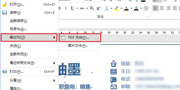 6、完成修改后,点击"开始",选择"输出为",然后选择"PDF文件",以确保简历在发送和打印时保持格式一致。
