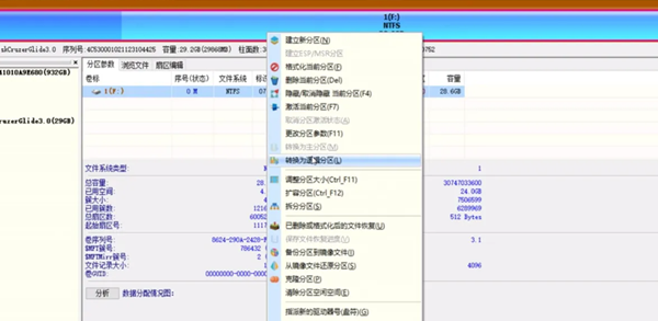 3、在菜单中选择"转换为逻辑分区"选项进行逻辑分区转换。