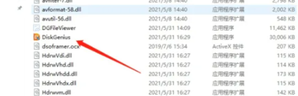 2、解压下载的软件,并打开文件夹,找到DiskGenius图标。