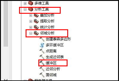3、然后在下拉内容分别点击“邻域分析缓冲区”功能。
