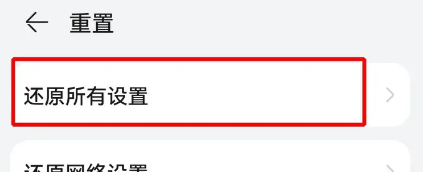 3、点击“还原所有设置”,即可将所有自带应用复原。