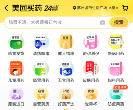 第二:美团【点击下载】 介绍: 1、打开美团后,同样在首页就可以找到“买药”板块。 2、能够提供24小时服务,不管什么时候需要买药都可以使用它。 3、而且它联合美团外卖服务,有专门的骑手为你送货,随时下单随时送达。