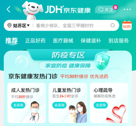 第三:京东【点击下载】 介绍: 1、打开京东app后,首页就能找到“看病买药”功能了。 2、除了买药之外,这里还包含了在线医生资讯、预约医院门诊等看病等人性化服务。 3、和京东到家合作,共享外送骑手,能够保证你购买的药品在1个小时之内送到门上。
