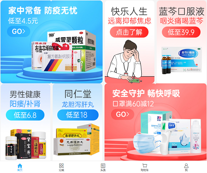 第五:1药网【点击下载】 介绍: 1、也是比较老牌的一个网上购药平台,保证安全可靠。 2、除了可以使用app之外,还支持微信小程序购药,提供1小时外卖服务非常便捷。 3、品类丰富,皮肤病、慢性病、眼睛、失眠、肠胃、家中常备药品等都可以购买到。