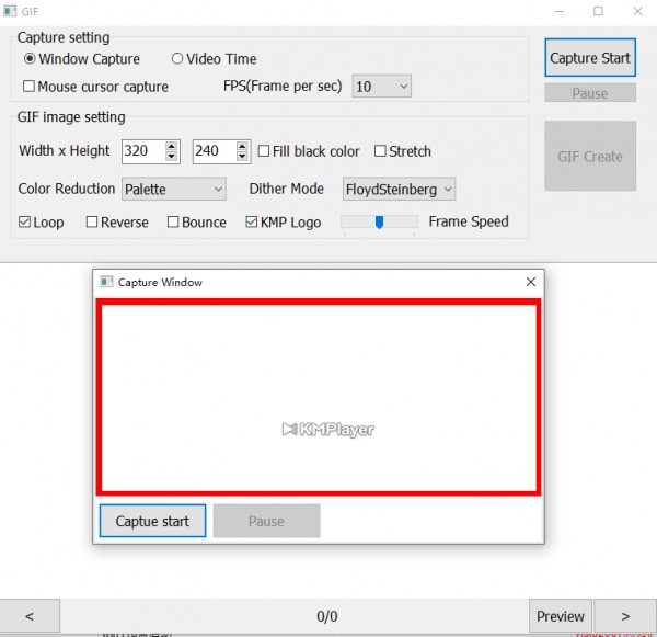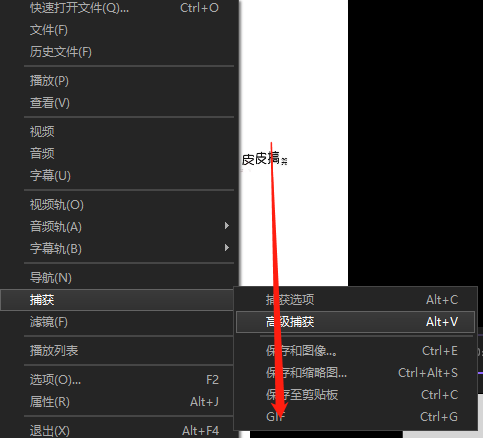 2、单击KMPlayer界面左上角的菜单按钮,然后选择"捕获"--“GIF”选项,这将打开KMPlayer的录制界面。