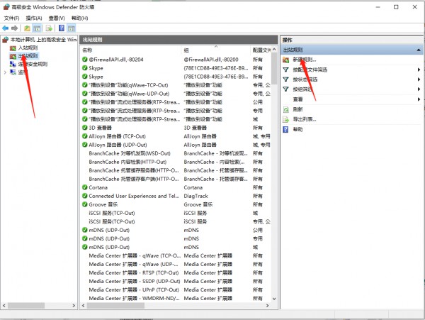 3、点击“出站规则”,在跳出页面后选择“新建规则”。