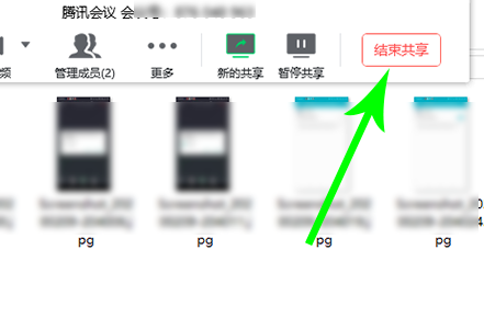5、打开下拉选项后点击“结束共享”,然后其他参会者将无法继续观看自己的电脑画面。