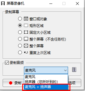 3、然后选择“麦克风+扬声器”,点击“录制”即可解决没有声音问题。