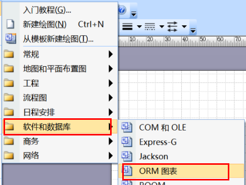 4、接着找到文件“新建”打开,找到“软件和数据库”打开,找到“ORM图表”打开。