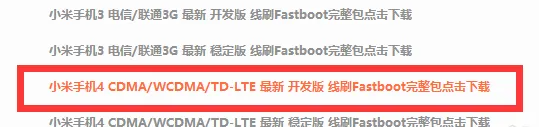 7、进入小米线刷界面,选择并下载对应手机型号的线刷数据包。