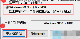 3、选择“Windows NT S.x/6.x MBR”,点击“安装/配置”。