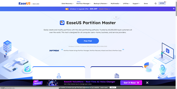 3、EaseUS Partition Master EaseUS Partition Master是一款功能齐全的磁盘管理工具,它具有分区调整、数据恢复、克隆等功能。它支持动态磁盘管理和UEFI引导,适用于个人和商业用户。