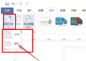 3、在“设计”界面,找到左侧“纸张方向”功能点击。