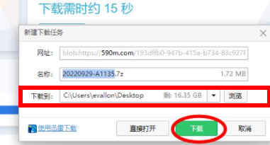 3、等待文件下载后弹出界面,选择下载的位置后点击“下载”。