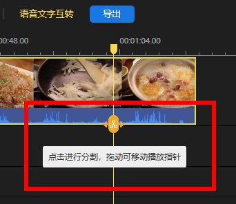 3、点击视频,将鼠标放到视频轨道单击,跳出黄色分割线,根据需求进行分割。
