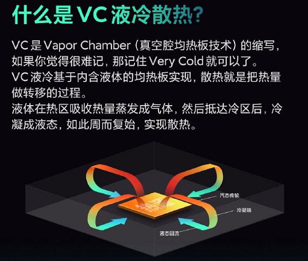 vc液冷散热式目前比较主流的手机散热技术之一,那么液冷散热和VC散热什么的有什么区别呢,今天小编就整理了一下关于VC液冷散热的内容,能够帮助大家更快的了解到VC液冷散热的效果。 vc液冷散热是什么意思详情答:使用液体散热的技术 VC液冷是一个内含液体的均热板,通过液体吸热并蒸发成气体然后抵达冷区; 将气体凝固成液态,周而复始从而达到散热的效果。