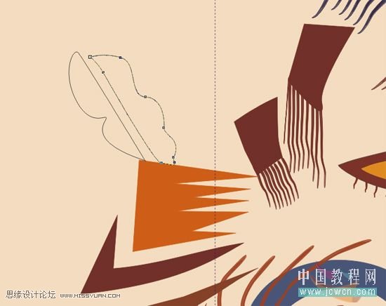 38、单击“钢笔工具”,创建图形,单击“形状工具”,在所需调节的点上右击选择“曲线”(或称为“反转曲线”)命令,进行圆滑调节。然后,选择调色板中的相应颜色,填充图形。如图38A所示:
