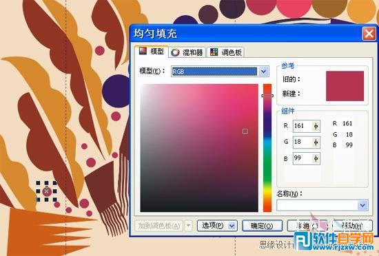 分别单击“填充工具”,进行颜色的参数设置,单击“确定”按钮,填充图形,如图35B所示: