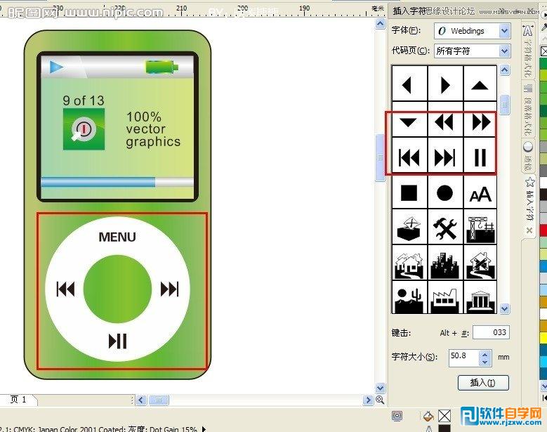 按钮直接在《插入字符》里面拖出来用就是,字打上就是。