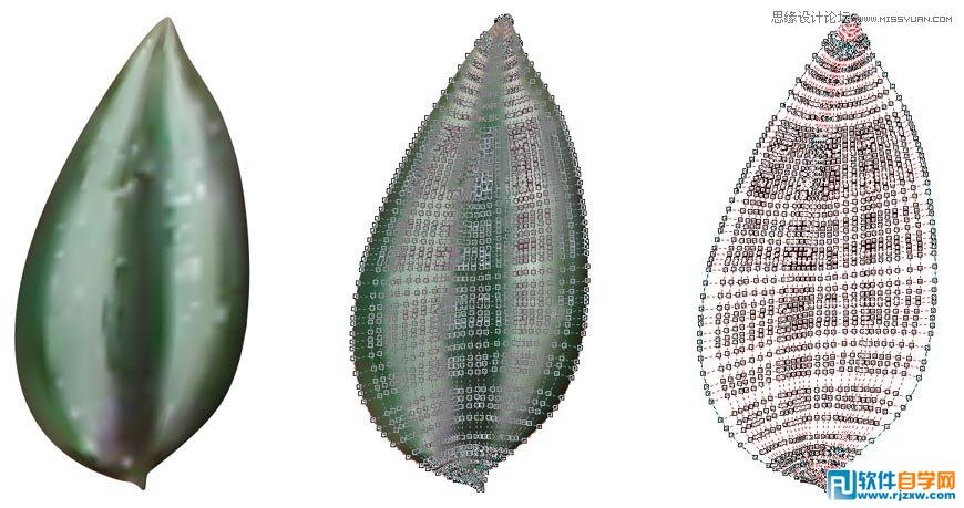 以上是3个网格对象没设置透明时的样子,可以看出,它们都是四周全黑,中间强度不同的白色。 下面就是用这些网格小点透明并适当缩小后放到叶片上的效果。