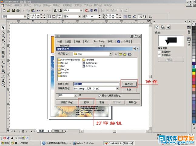 6. 现在可以点打印将文件保存为PostScript格式了。可别忘记看一下预览打印小心有错误,有不尽的地方还望高手指出。如图:
