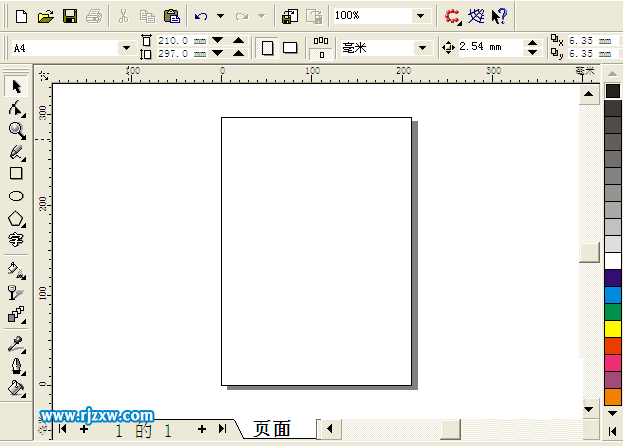 1、装完软件的初始界面,工具条的图标和颜料盒的图标都比较小,对于大屏幕的电脑来说,不方便