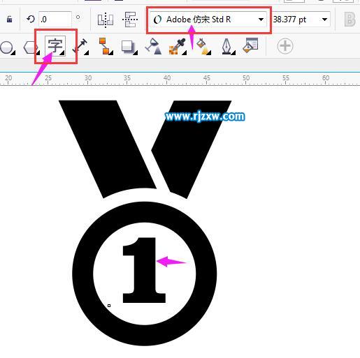第6步:点击文字工具,输入1字。设置粗一点的字体。