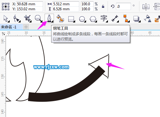 第7步:点击钢笔工具,绘制一个三角形。