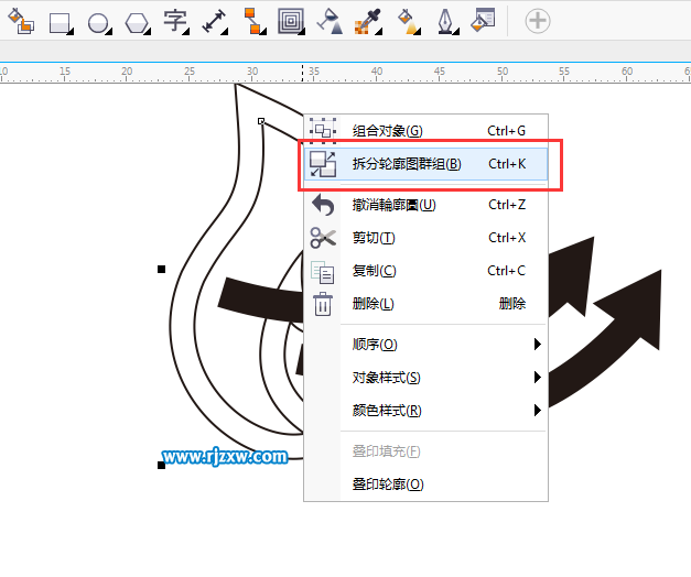 第11步:选中对象,右击选拆分轮廓图群组。