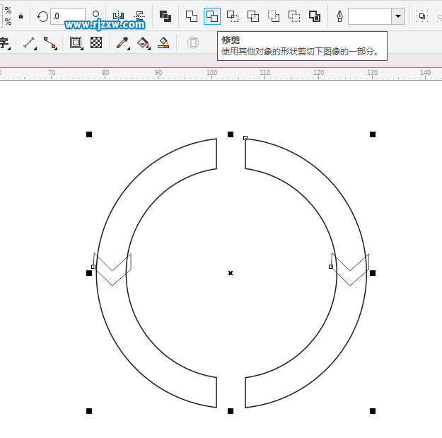 第5步、选择两个箭对,再选圆环,再点修剪工具。