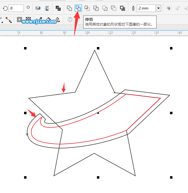 第9步、然后先选择外面的大箭头,再选五角星,点击修剪。
