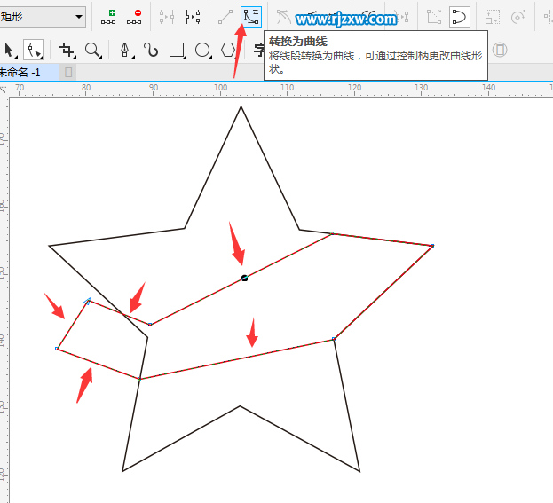 第4步、使用形状工具,在直线上点一下,然后就可以点击转换为曲线。