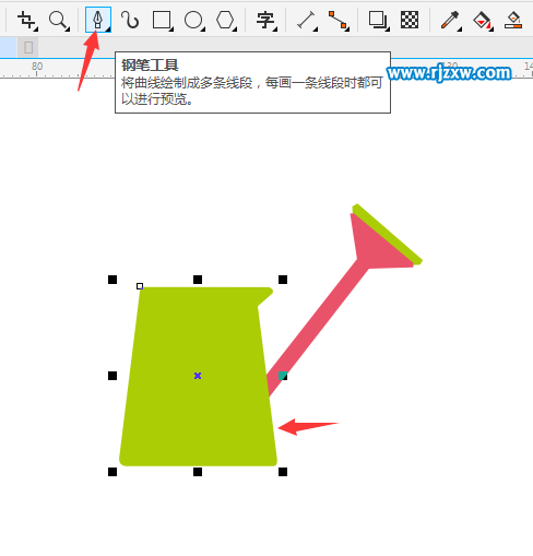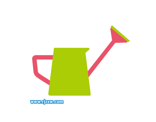 第2步、绘嘴填充绿色,再使用钢笔工具,绘制水壶的水管出来,填充粉红色,效果如下: