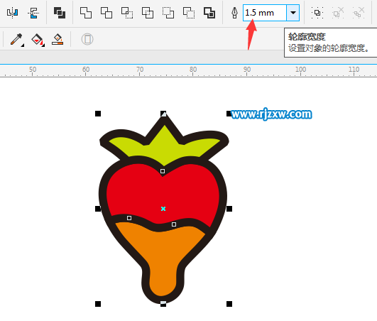第1步、打开CDRX8软件,点击钢笔工具,绘制草莓的外形出来。