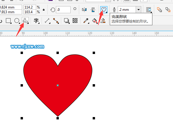 第1步 、打开软件,点击基本形状工具,点击心形工具,绘制一个心形出来。