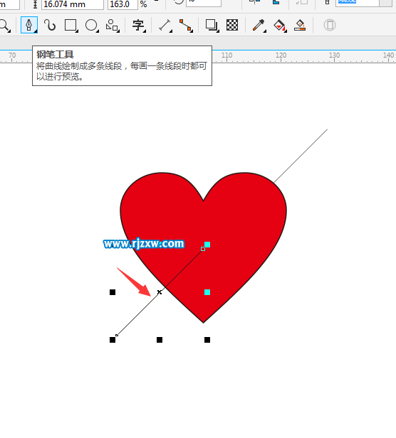 第2步 、使用钢笔工具,绘制一条直线出来,效果如下: