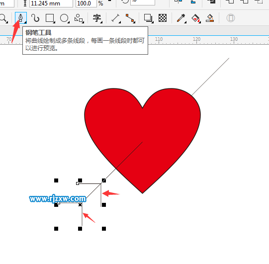 第6步 、设置好了后,使用钢笔工具,绘制箭头出来。