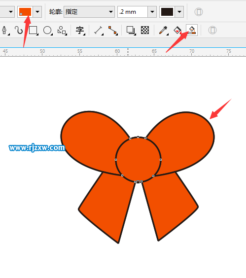 第5步、也是一样分别使用智能填充,设置红色,填充一下红色的蝴蝶结。