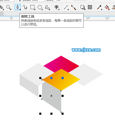 第5步、同样的方法,绘制一样的侧面,并填充渐变粉红色。
